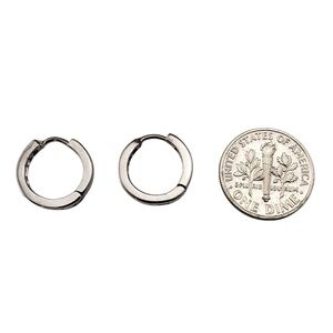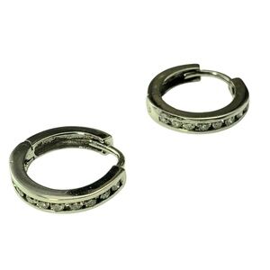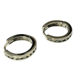 14K White Gold and Diamond Hoop Huggie Earrings #20885