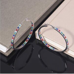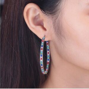 14K White Gold with Multi Colored Cubic Zirconia Big Hoop Latch Back Earrings