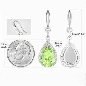 14K White Gold Plated Silver Tone Dangling Teardrop with Halo French Wire Hook Drop Earrings Embellished with Teardrop and Round Cut Peridot Green and White Diamond Cubic Zirconia CZ Zircons