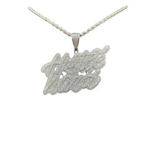 New Icy Supreme Quality 14K White Gold Finish Hustle Hard Pendant over Brass Dipped In Gold 5xTimes To Include a Free 14K White Gold Finish 24inch x 3mm Rope Chain For Men.