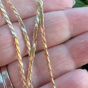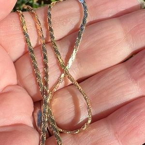 STUNNING FLAT STYLE CHAIN , UNSURE WHAT THIS BEAUTIFUL WEAVE IS CALLED, POSSIBLY FLAT SNAKE. DONE IN SOLID 14K GOLD, STAMPED & ALSO TESTED. APPROX 15.5”LONG, VERY UNUSUAL STYLE AND SIMPLY BEAUTIFUL !!!