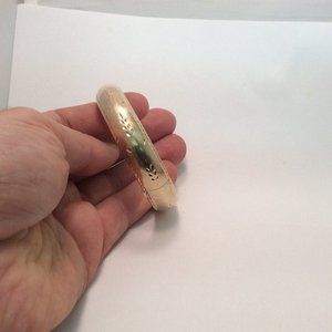 14K YELLOW Real Solid GOLD HINGED SATIN BANGLE W/WHEAT CARVINGS Bracelet 20.3gr