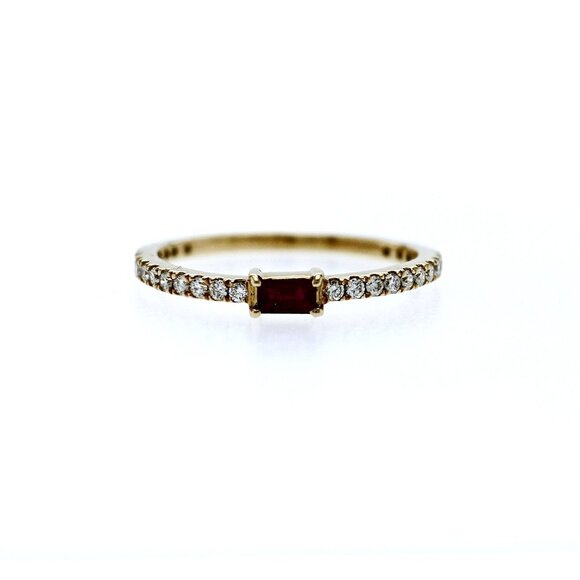 14K Yellow Gold 0.24 CT Diamond & 0.12 CT Ruby Ring Band Size 6