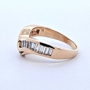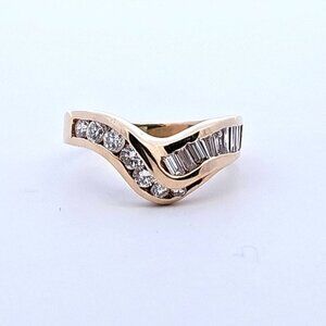 14K Yellow Gold 1.01TW Channel Set Round Baguette Diamond Chevron Ring Size 8.25
