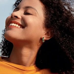 14K Yellow Gold 925 Sterling Silver Emerald Green Cubic Zirconia Huggie Earrings