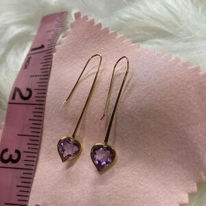 1.29g 14K yellow gold Amethyst Stone Fine jewelry Drop earrings 1.5in