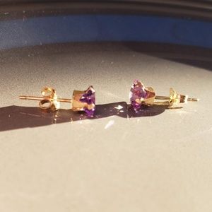 14K Yellow Gold Amethyst Stud Earrings