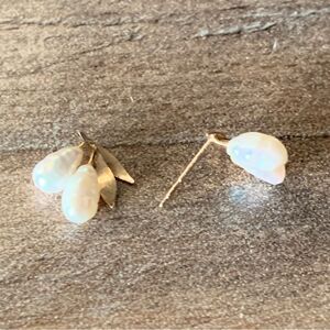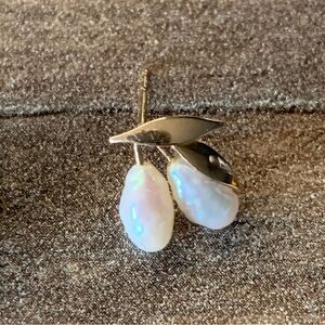 These vintage earrings are 14K yellow gold baroque pearl stud earrings designed with a fruit motif. Each earring features two irregularly shaped baroque pearls that hang from a small gold leaf cluster at the top, creating the look of tiny golden branches of fruit stems. The organic, asymmetrical pearls give them a natural and elegant charm, while the polished bold leaves add a refined, vintage touch. These Beautiful earrings featuring lustrous pearls and gold leaf accents. Perfect for any occasion. Length of item (inches): 0.30. Weight: 0.7 grams(s) (Includes stone weight)