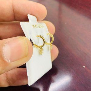 14K Yellow Gold CZ Huggies Hoop Earrings Heart Drop Earrings for Womens Aretes