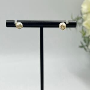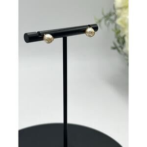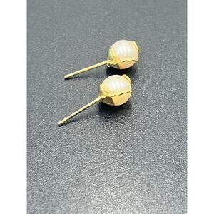 These are classic pearl stud earrings featuring lustrous white/ cream pearls set in 14k yellow gold (marked 585 gold) prong settings. Each earring has a traditional post back design. The pearls appear to be cultured pearls with good luster and surface qua quality. The 6mm size makes them versatile for both everyday wear and special occasions. At 0.9 grams total weight, they're lightweight and comfortable for extended all day wear.