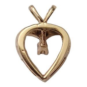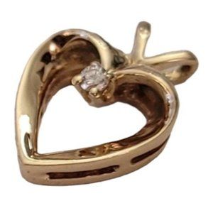 14K Yellow Gold Diamond Chip Open Heart Pendant E242