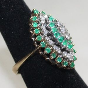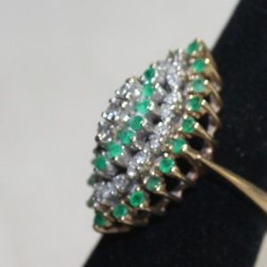 14K Yellow Gold Diamond & Emerald Cluster Ring