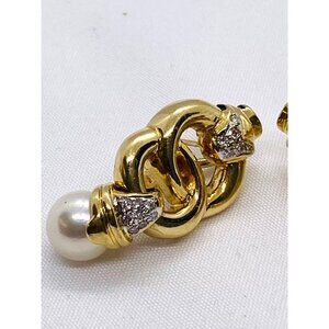 14K Yellow Gold Diamond Pearl Earrings READ!