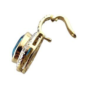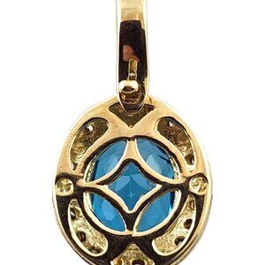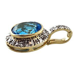 14K Yellow Gold Diamond and Blue Topaz Pendant