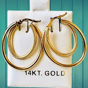 14K Yellow Gold Earrings Duble Hoops Italy 2.2 grams Leverback New