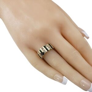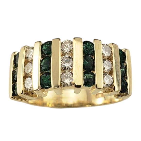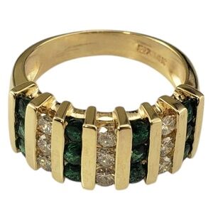14K Yellow Gold Emerald and Diamond Band Ring Size 7.25 #21206