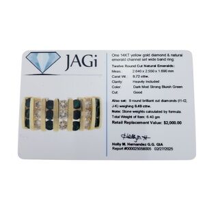 14 Karat Yellow Gold Emerald and Diamond Band Ring Size 7.25 JAGi Certified-