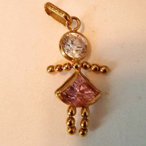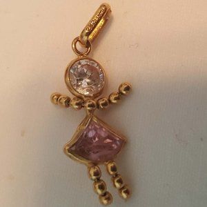 14K Yellow Gold Girl Charm Figure Pink Center Stone