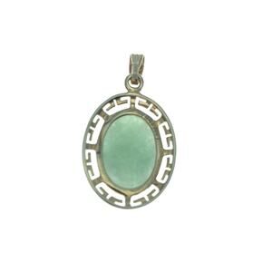 14K Yellow Gold Green Jade Cabachon Pendant Greek Key 3 grams