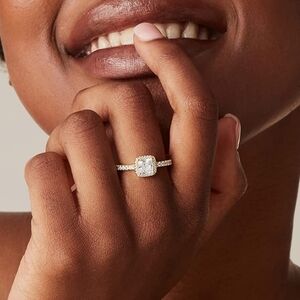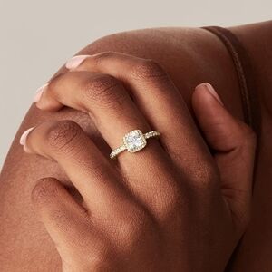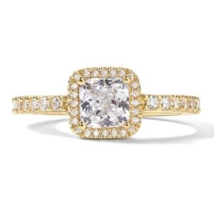 14K Yellow Gold Halo Cushion Diamond Ring Square