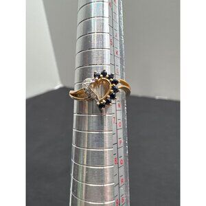 14K Yellow Gold Heart-Shaped Sapphire & Diamond Ring Size 6.5