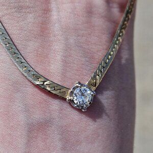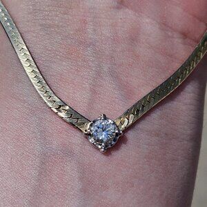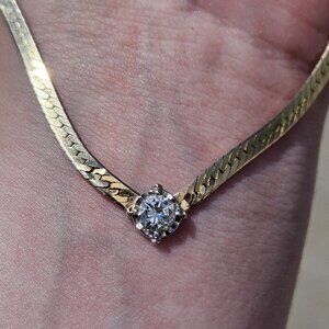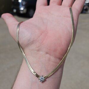 14K Yellow Gold Herringbone Static .60CT Diamond Necklace Chain 18 Inches 9.9G