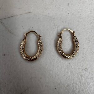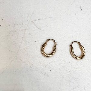 14K Yellow Gold Hollow Puff Earrings Shrimp Hoop Earrings .