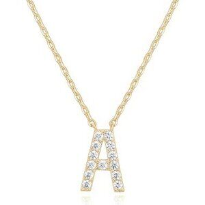 14K Yellow Gold Initial Necklace Letter Dainty Diamond Gift Present A - O