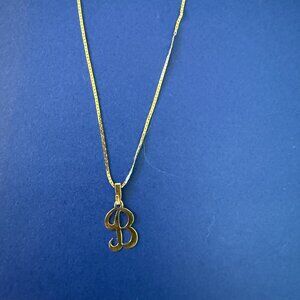 14K Yellow Gold Letter "B" Initial Pendant WITH Chain Necklace 18"