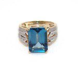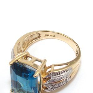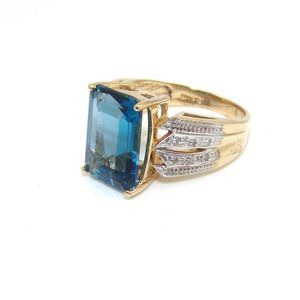 14K Yellow Gold London Blue Topaz Diamond Ring Size 8.25