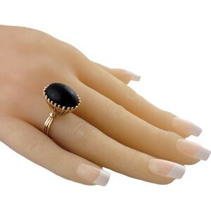 This gorgeous 14K gold ring features a beautiful oval black onyx stone!