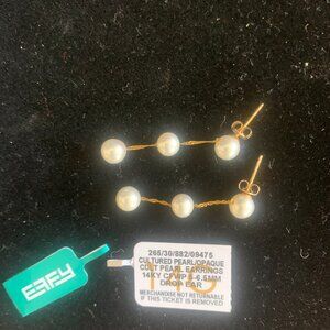 Effy cultured pearl dangle earrings, 5mm, 14k gold. Seller purchased new, only worn twice. 1.25 inches long