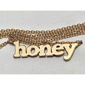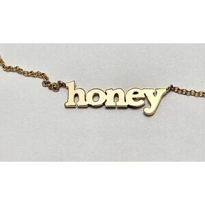 14K Yellow Gold Resizable Link Chain Necklace with Initial "Honey" Charm Pendant