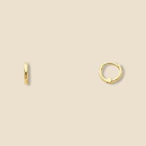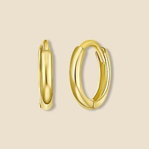 Add a touch of elegance to your look with these 14K Yellow Gold Small Plain Huggie Earrings. Featuring a minimalist design, these dainty hoops are crafted from genuine 14k yellow gold. Their lightweight 8x8 mm size and polished finish make them perfect for everyday wear or layering with other earrings.