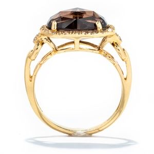 14K Yellow Gold Smoky Quartz & Diamond Halo Ring