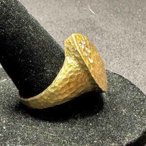 14K Yellow Gold Teardrop Atasay Kuyumculuk Ring with Diamonds, Size 9