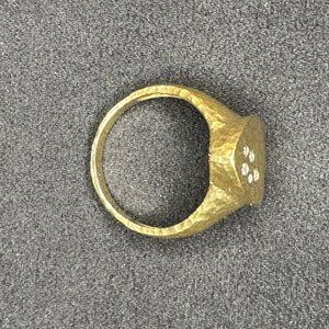 A 14K yellow gold teardrop ring by Atasay Jewelry from Turkey. It features 5 white diamonds. Total weight of the ring is 5.5 grams, signed by the brand. The ring is in size 9 with a 3mm band width, showcasing vintage style and elegance.