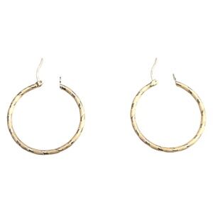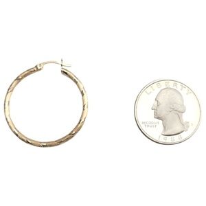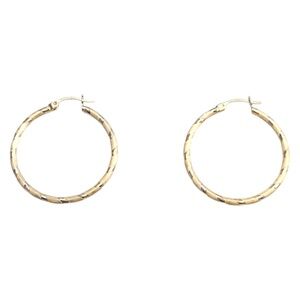 14K Yellow Gold Textured Hoop Earrings #21092