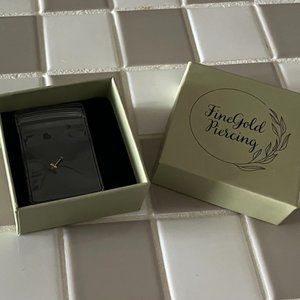 Brand new in box single earring. 14k solid yellow gold+ implant grade titanium. Not plated or filled. This earring is the 4.2mm size in the photos with 6mm push back. Post is 0.5mm thick, push-in-back 0.82mm thick.