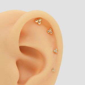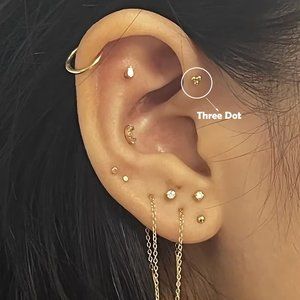 14K Yellow Gold Three Dot Stud Earring (Single)