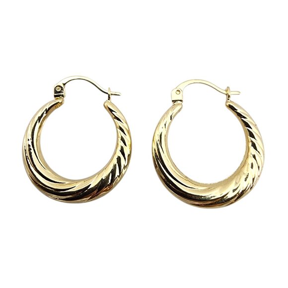 14K Yellow Gold Twisted Hoop Earrings #22724