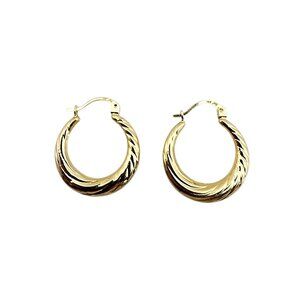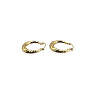 14K yellow gold twisted hoop earrings with a textured design—classic with a stylish twist.