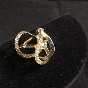 These earrings are very different – there are two twisted hoops – one is smooth and the other has a small etched diamond pattern. Pressure clasps. Dimensions: height (top to bottom) - 1 1/8”, width (side to side) - ½+”, and depth (front to back) – 7/8”. Stamped: 14K Italy (very small on the wire).