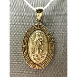14K Yellow Gold Virgin Mary Religious Oval Pendant