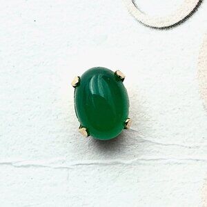 14K Yellow Gold Womens Earrings Pierced Green Chrysophrase Stud Gift Idea for He