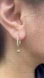 Pair of dangle diamond huggie earrings featuring a hamsa motif dangle with burnished set diamond hanging off a diamond huggie hoop weighing a total of 0.25 carats total weight with a hinge closure.