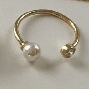 14K Yellow Gold plated, open Pearl Ring is slightly adjustable, Size 7 NEW