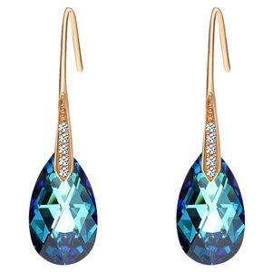 14K Yellow Gold with Bermuda Blue Austrian Crystal Teardrop Drop Hook Earrings