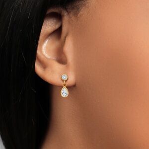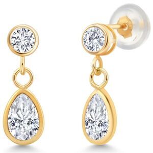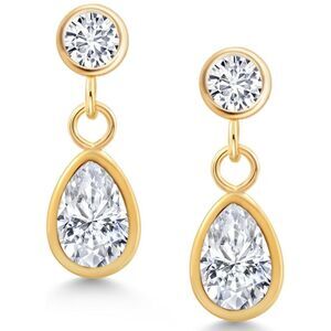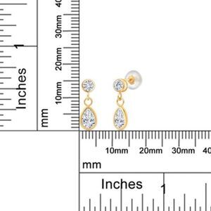 Solid 14K Yellow Gold Dangling Post Back Drop Dangle Earrings Embellished with:
