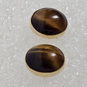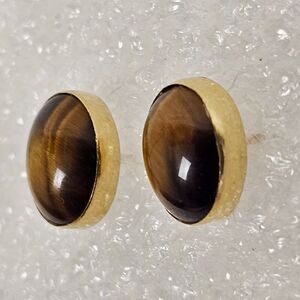 14K Yellow Gold Tiger Eye Gemstone Stone Oval Pierced Stud Earrings 2.30 Grams